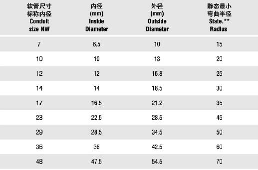 PA6尼龍軟管型號規格表:軟管尺寸-內徑-外徑-靜態最小彎曲半徑